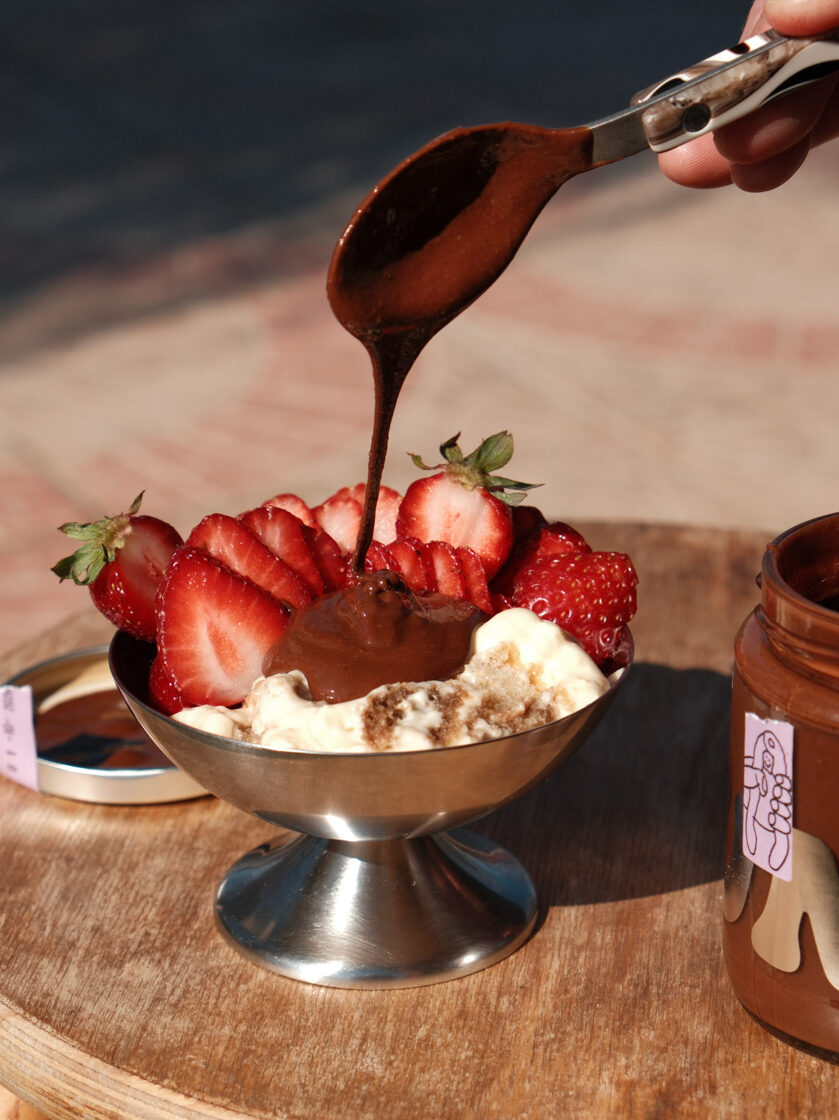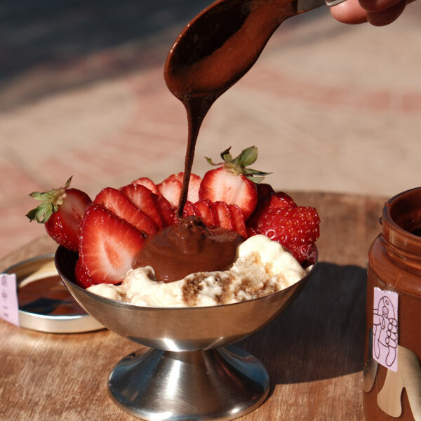 Lazdu šokolādes krēma sastāvā ir 74% lazdu riekstu, kamēr slavenajā Nutella tikai 13%. Pagatavots ar tumšo beļģu šokolādi un kā radīts, lai pārlietu saldējumam.